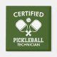 Vous jouez au pickleball, et nous espérons que vous dînez bien. Cette conception cool de pickleball a des pagaies et une balle et le texte "technicien certifié pickleball"