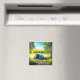 Un joli art oriental représentant une tente dans un cadre paisible en bois au bord d'un lac.