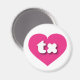 Cet aimant est doté d'un coeur rose chaud et vibrant contenant les caractères gras, blancs, arrondis, inférieurs coques tx, une abréviation ludique pour le Texas, l'état étoile solitaire.