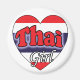 Leuke magneet a rencontré een hart afgebeeld met de Thaise vlag erop. Op de tekst staat : Thai girl De achtergrond est à de kleur wit. Leuk om te geven rendus of voor jezelf om te laten zien dat je trots bent om Thais te zijn. kleuren : rood, blauw en wit.