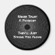 Un aimant frigo slogan. Ne faites jamais confiance à un physicien, Ils vous feront marcher le long - imprimé en blanc sur un trou noir en corde. Parfait pour un physicien, un étudiant en physique ou un enseignant.