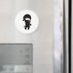 Joyeux dessin animé en ninja habillé en noir avec un bras levé en agitant. On peut voir le katana d'épée japonais traditionnel attaché par-dessus son épaule.