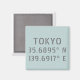 Aimant carré urbain moderne avec latitude et longitude coordonnées de Tokyo, Japon en texte gris sur arrière - plan bleu