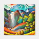 AI a créé un imprimé représentant l'interprétation d'un paysage montagneux assez rocheux dans lequel un torrent à courant rapide se précipite entre les rochers et se précipite dans le lac en dessous.