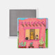 Ces trois chats curieux sont assis à la fenêtre d'un adobe de style taos rose agréable qui habite le sud-ouest américain. Des cactus richement texturés et de succulents plantes dans des pots de talavera colorés accentuent la maison, offrant un contraste bienvenu au sable du désert. Montagnes violettes et verdure égayent l'arrière - plan sous un ciel bleu vif et sans nuages.