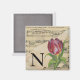 La tulipe violette et jaune de style botanique s'associe à la musique vintage en feuille dans un style victorien classique. Cette conception inspirée de la découpage est personnalisée avec le monogramme "N" sur un arrière - plan de parchemin âgé.