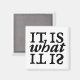 Typographie noir et blanc qui dit "C'est ce qu'il est" en forme de carré. A l'origine peint à la main sur du papier.