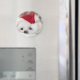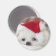 Un aimant avec une adorable photo d'un mignon chien blanc portant un casquette de Noël rouge.