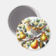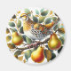Jolie perdrix d'or dans un aimant de poire avec un joli feuillage vert sauge et des poires dorées.
