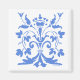 Une fleur de lis unique avec couronne et vignes dans un design abstrait en filigrane bleu sur un magnéton de cuisine.