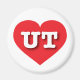 Cet aimant présente un coeur rouge vif contenant les lettres coques supérieures UT, gras, blanches, l'abréviation officielle de Utah, l'état de ruche.