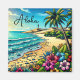 Aloha ! Jolie côte tropicale. Jolie eau bleue, palmiers, fleurs tropicales et phare en arrière - plan. Ai art fait dans un style pop art de la bande dessinée.