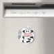 Vache boit du lait. Petit veau mignon et drôle avec une moustache au lait.