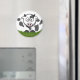 Vache tachetée ronde en dessin sur des aimants frigo amusants.