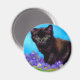 Magnet avec un chat et des fleurs dans le style Van Gogh! Un chat noir pose avec des fleurs violettes. Un cadeau à la purr pour les amoureux de les chats et collectionneurs d'art hollandais !