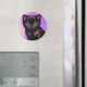 Magnet avec un chat de style Van Gogh avec arrière - plan violet. Ce chaton noir regarde adorablement le spectateur ! Un grand cadeau pour les amoureux de les chats et les collectionneurs d'art hollandais !