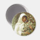 Une belle illustration vintage d'une petite fille dans la chute de neige tenant des branches saintes. Dans les couleurs du blanc, du vert et du rouge.