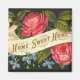 Bannière "home sweet home" jolie et féminine, entourée de fleurs victoriennes féminines, aux roses roses roses, et petit motif floral violet bleu. Un joli panneau d'art de style peint pour le chauffage domestique, ou juste un décor général pour ajouter la chaleur et l'amour de la maison.
