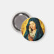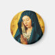 L'arrière - plan claire et sombre contraste avec la tête brune rayonnante de la Vierge et la coiffe blanche qui la recouvre, et ses mains sont délicatement fermées ensemble
