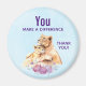 Vous faites la différence, merci aimant avec une jolie peinture aquarelle d'un lion mère tenant son bébé. Un joli bouquet fleuri violet en dessous ajoute une touche douce à cette image douce et adorable. Arrière - plan bleu clair.