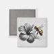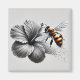 vue macro détaillée d'une abeille qui pollinise une fleur d'hibiscus. Cette représentation en noir et blanc met en évidence les textures délicates du corps flou de l'abeille juxtaposé aux pétales doux, révélant un monde souvent négligé.