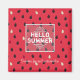 Motif de pastèque réaliste avec un badge d'été bonjour. Fraîche et savoureuse à l'intérieur de pastèque avec graines design été. Personnalisez en modifiant ou en supprimant le texte.