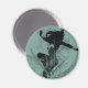 Une silhouette vintage de femme Merveilleuse sur le point d'atterrir d'un grand saut, accompagnée de feuilles verts et de fougères.