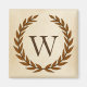 Une délicate couronne de laurier est posée sur un arrière - plan de papier parchemin dans le style romain classique. Ce design est personnalisé avec le monogramme "W" dans une tonalité de sienne riche.