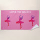 La serviette de plage "LOVE TO DANCE" en rose avec trois danseurs.