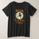 Cette dame aime être sorcière en caractères mélangés orange peut être personnalisée avec votre nom. La silhouette d'une sorcière en jupe et talons hauts avec cheveux longs et casquette de sorcière, chevauchant un balai, illuminé par le clair de lune avec des chauves-souris volant autour. Placez-vous sur un arrière - plan noir solide.