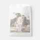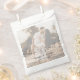 Moderne Foto Gastgeschenk Hochzeit Taschen mit einem einfachen Design mit "Liebe ist süß" in einem rustikalen Stil Skript zusammen mit Ihren Namen und Hochzeitsdatum über Ihr Lieblingsbild mit einem undurchsichtigen Overlay. Diese elegante Hochzeitsgeschenktasche mit minimalistischem Layout ist ideal für jeden Hochzeitsstil.