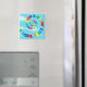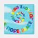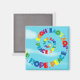 Aimant avec un design en spirale amusant de 'Amour, Espoir, Paix, Joie' dans les couleurs arc-en-ciel.