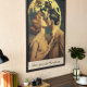 Affiche de voyage d'époque d'un couple romantique s'embrassant près d'un lac avec la lune dans l'arrière - plan