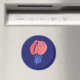 Der primitive rot-blaue Luftballon wird in Aquarellen gezeichnet und auf einem dunkelblauen Hintergrund platziert. Es ist ein süßer Druck für Ihre Zuhause.
