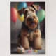 Ein Airedale Hund mit Ballons Geburtstagsdesign ist eine lustige und skurrile Art, einen besondere Anlass mit dem Furry eines Hundefreundes zu feiern. Dieses Design ist typisch für einen Airedale Terrier Hund mit einem festlichen Geburtstagshut und umgeben von bunten und fröhlichen Ballons.