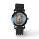 Uhr, Vintage Männeruhr mit schwarzem Lederarmband