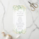 Unser Gartenchic Hochzeitsprogramm zeigt Ihre Zeremonie Details in eleganter, grauer Schrift, oben und unten gerahmt durch pastellgrünes Blattwerk und Blätter. Auf der Rückseite finden Sie die Mitglieder Ihrer Hochzeitsfeier mit leicht bearbeitbaren Textfeldern. Koordiniert mit unserer Botanischen Hochzeitskollektion für Hochzeiten im Sommer, Frühling, im Freien oder im Garten. Verwenden Sie die Vorlagenfelder, um Ihre Zeremonie- und Brautparty-Informationen hinzuzufügen, und klicken Sie dann auf "Anpassen", um Elemente bei Bedarf neu zu positionieren. Brauchst du Hilfe? Kontaktieren Sie mich über den Link "Diesen Designer Gefragt" auf dieser Seite.