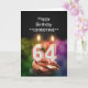Brûler des bougies à gâteau de 64e anniversaire en forme de chiffres sur un cupcake au chocolat. Customisez avec le nom de la personne qui a donné naissance. Convient à un homme ou une femme. Voir toute la gamme de cartes pour les âges et les relations dans mon magasin. Toutes les oeuvres d'art copyright Norma Cornes