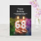 Brûler des bougies à gâteau de 68e anniversaire en forme de chiffres sur un cupcake au chocolat. Customisez avec le nom de la personne qui a donné naissance. Convient à un homme ou une femme. Voir toute la gamme de cartes pour les âges et les relations dans mon magasin. Toutes les oeuvres d'art copyright Norma Cornes