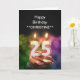 Burning 25th birthday cake candles in the shape of numbers on top of a chocolate cupcake. Customize with the name of the birthday person. Suitable for a man or a woman. See the whole range of cards for ages and relationships in my store. All artiwork copyright Norma Cornes