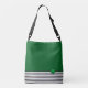 Sac croisé réglable de shamrock de corps. Arrière - plan vert de Kelly avec un fond rayé noir et blanc, orné avec un trèfle simple de 4 feuilles pour juste le talent droit de quantité.