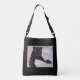 Tout le sac fourre-tout croisé imprimé est montré en couleur noir avec des sangles noires avec une photo d'un chat noir sauvage, customiser ce fourre-tout ou acheter tel quel. La taille moyenne est affichée, vous pouvez choisir une autre taille et un autre style si vous le souhaitez.