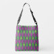Un motif arlequin de vert et de violet se transforme en Jacquard ludique avec une superposition de silhouettes de diamants dorés et de fleur de lis, créant un motif amusant et coloré parfait pour toute célébration Mardi Gras influencée par la Nouvelle-Orléans. Ce sac est disponible en plusieurs tailles et à la fois les styles de sac sac fourre-tout et de sac de carrosserie.