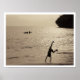 Silhouette eines Jungen, der bei Sonnenuntergang auf einem karibischen Strand Fahrräder macht