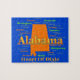 Buntes Alabama-Staatsstolzbild einschließlich Karten-Silhouette mit Großstädten, Städten und Spitznamen.