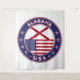 Abzeichen von Alabama mit Alabama-Flagge und US-Farbenflagge, abgerundete Form. Emblem von Alabama. Siegel von Alabama. USA Staaten Collection