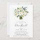 Elegante Blumendusche mit Blumenstrauß und einem Bouquet mit weißen Rosen und Pfannkuchen mit üppig grünem botanischem Blattwerk und Blätter. Personalisieren Sie Ihre Brautparty-Details in einem schicken Mix aus Block-, Serif- und Kalligraphie-Schriften.