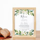 Charmantes Hochzeitsmenü zeigt Ihre Dinnerauswahl in schicker handgeschriebener Kalligraphie und moderner Blockschrift. Im Grün und in den weißen Blume, die mit der blühenden Alabaster-Hochzeitskollektion harmonisch in das Wasser passen.