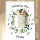 Umgeben Sie Ihre süße Babe in einem Kranz mit weißen und elfenbeinfarbenen Blume und grünem Laub mit dieser hübschen Foto-Kulisse, die den Namen eines kleinen Mädchens in handgeschriebener Kalligraphie-Schrift und Meilensteine von 1-12 Monaten rund um den Bereich der Blume enthält.