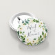 Identifizieren Sie die Hauptakteure in Ihrem Brautparty mit unseren eleganten, süß-schicken Blumenknöpfen. Button zeigt einen Blumenkranz in Grün und Weiß mit "Trauzeugin" in handgeschriebenem Skript.